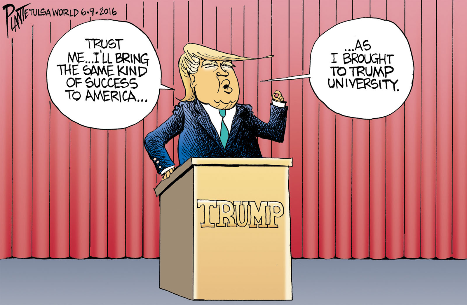 Tags/Keywords Donald J. Trump, GOP, Presumptive Republican Presidential Nominee 2016, Republican Party, RNC, Trump trust, Trump University, FILE: PlantB20160610 Reprint This CartoonBuy A PrintBuy The Original REPRINT THIS CARTOON Fill out the info below and I'll be in touch ASAP Your Name (required) Your Email (required) Details, Print, Digital, Circulation, etc. Please leave this field empty. BUY A PRINT OF THIS CARTOON Fill out the info below and I'll be in touch ASAP Your Name(required) Your Email(required) Details, Number of copies, Questions. Please leave this field empty. BUY THE ORIGINAL Originals may or may not be available. Fill out the info below and I'll be in touch ASAP Your Name (required) Your Email (required) Your Message Please leave this field empty.