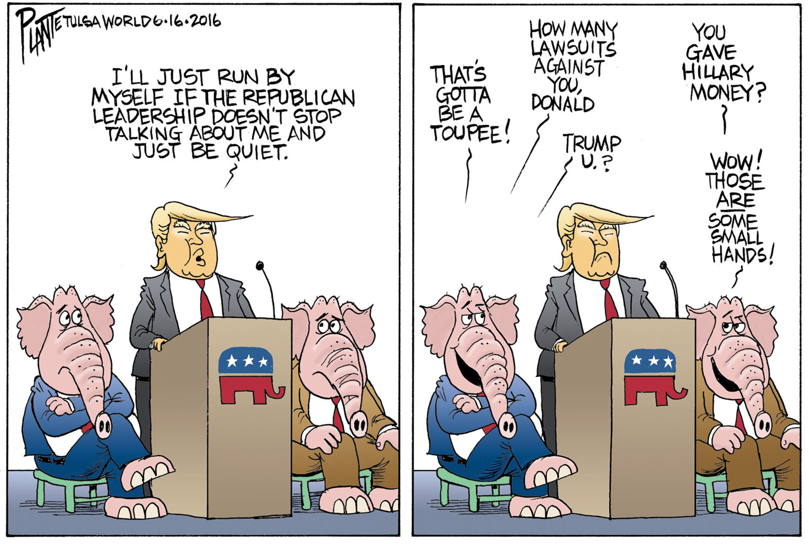 Tags/Keywords Campaign 2016, Donald J. Trump, GOP, Presumptive Republican Presidential Nominee 2016, Republican Party, RNC, Trump's threat, FILE: PlantB20160617 Reprint This CartoonBuy A PrintBuy The Original REPRINT THIS CARTOON Fill out the info below and I'll be in touch ASAP Your Name (required) Your Email (required) Details, Print, Digital, Circulation, etc. Please leave this field empty. BUY A PRINT OF THIS CARTOON Fill out the info below and I'll be in touch ASAP Your Name(required) Your Email(required) Details, Number of copies, Questions. Please leave this field empty. BUY THE ORIGINAL Originals may or may not be available. Fill out the info below and I'll be in touch ASAP Your Name (required) Your Email (required) Your Message Please leave this field empty.
