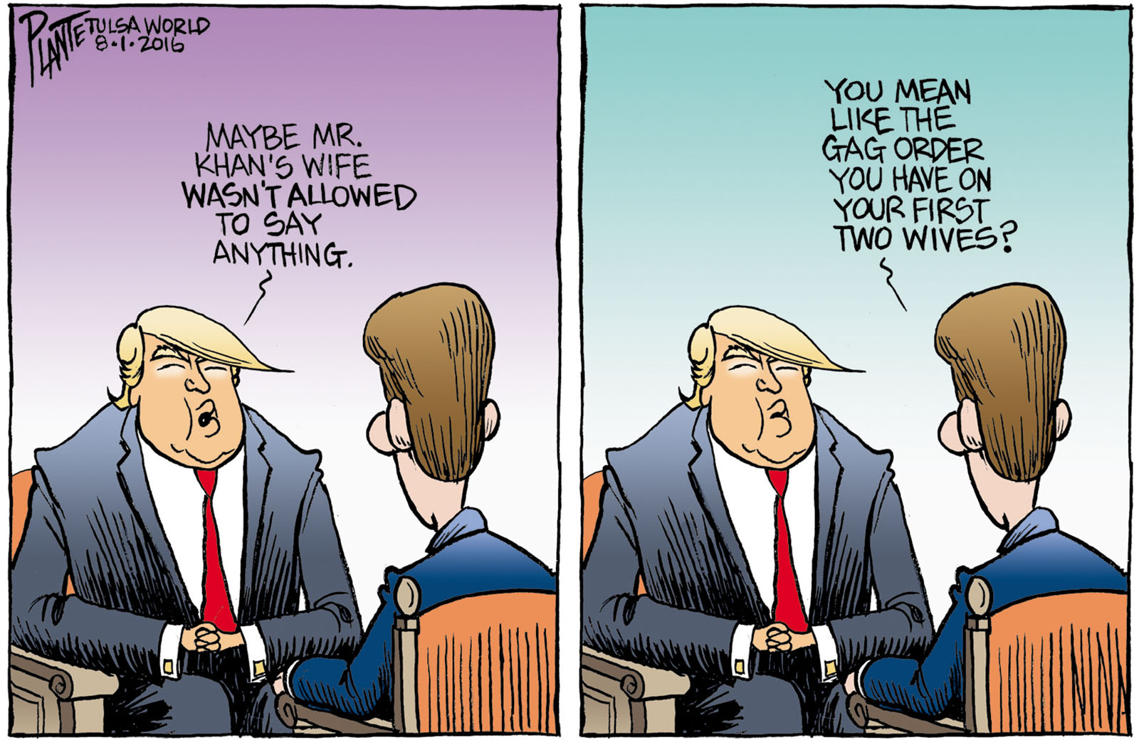 Tags/Keywords Donald J. Trump, GOP, Presidential campaign 2016, Republican Candidate for President 2016, Republican Party, RNC, Trump and Gold Star Mom, FILE: PlantB20160802 Reprint This CartoonBuy A PrintBuy The Original REPRINT THIS CARTOON Fill out the info below and I'll be in touch ASAP Your Name (required) Your Email (required) Details, Print, Digital, Circulation, etc. Please leave this field empty. BUY A PRINT OF THIS CARTOON Fill out the info below and I'll be in touch ASAP Your Name(required) Your Email(required) Details, Number of copies, Questions. Please leave this field empty. BUY THE ORIGINAL Originals may or may not be available. Fill out the info below and I'll be in touch ASAP Your Name (required) Your Email (required) Your Message Please leave this field empty.