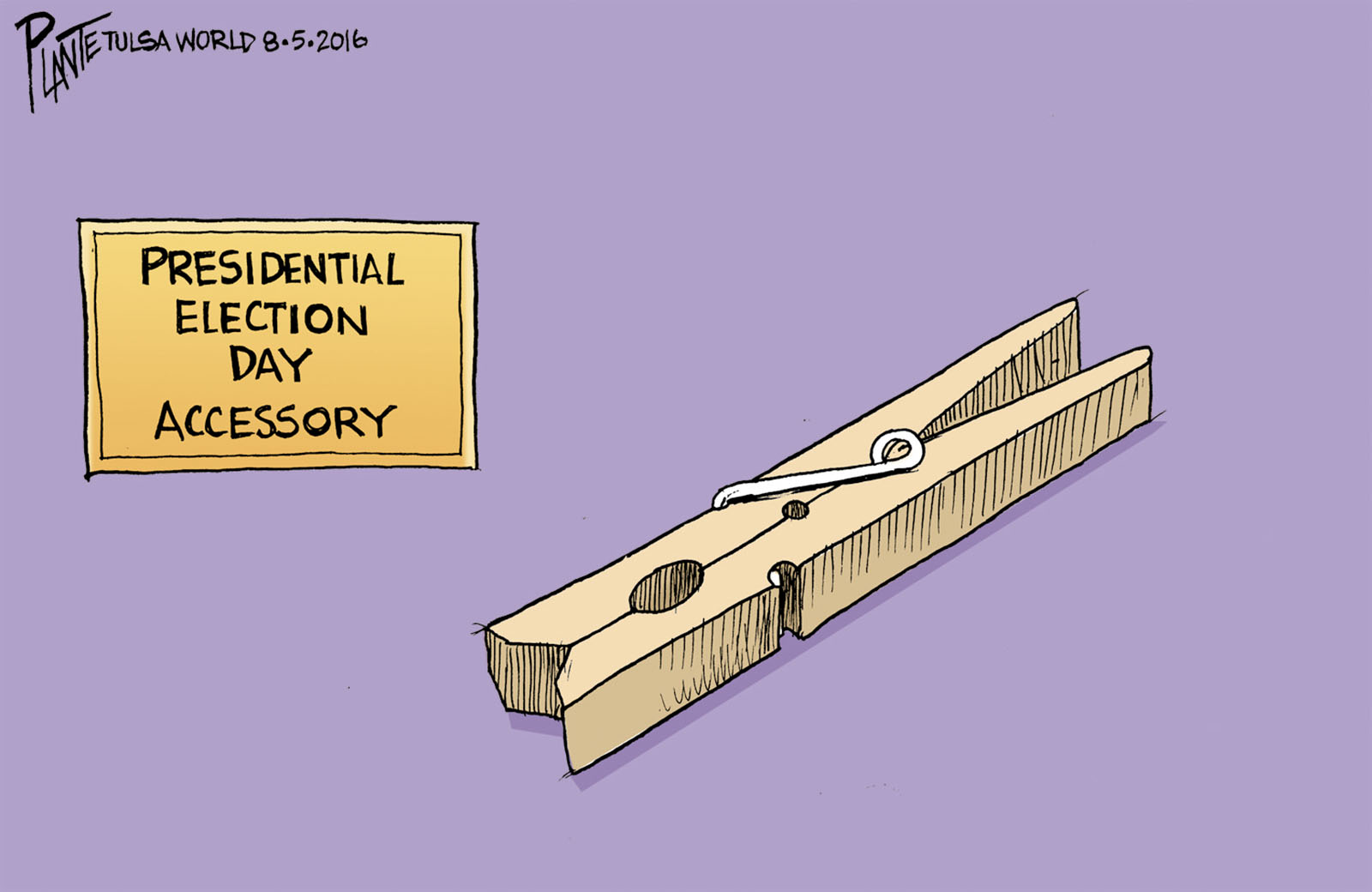 Tags/Keywords clothes pin, Democratic Party, DNC, Donald J. Trump, GOP, Presidential campaign 2016, Republican Party, RNC, Secretary Hillary Clinton, Trump vs. Hillary, FILE: PlantB20160807 Reprint This CartoonBuy A PrintBuy The Original REPRINT THIS CARTOON Fill out the info below and I'll be in touch ASAP Your Name (required) Your Email (required) Details, Print, Digital, Circulation, etc. Please leave this field empty. BUY A PRINT OF THIS CARTOON Fill out the info below and I'll be in touch ASAP Your Name(required) Your Email(required) Details, Number of copies, Questions. Please leave this field empty. BUY THE ORIGINAL Originals may or may not be available. Fill out the info below and I'll be in touch ASAP Your Name (required) Your Email (required) Your Message Please leave this field empty.