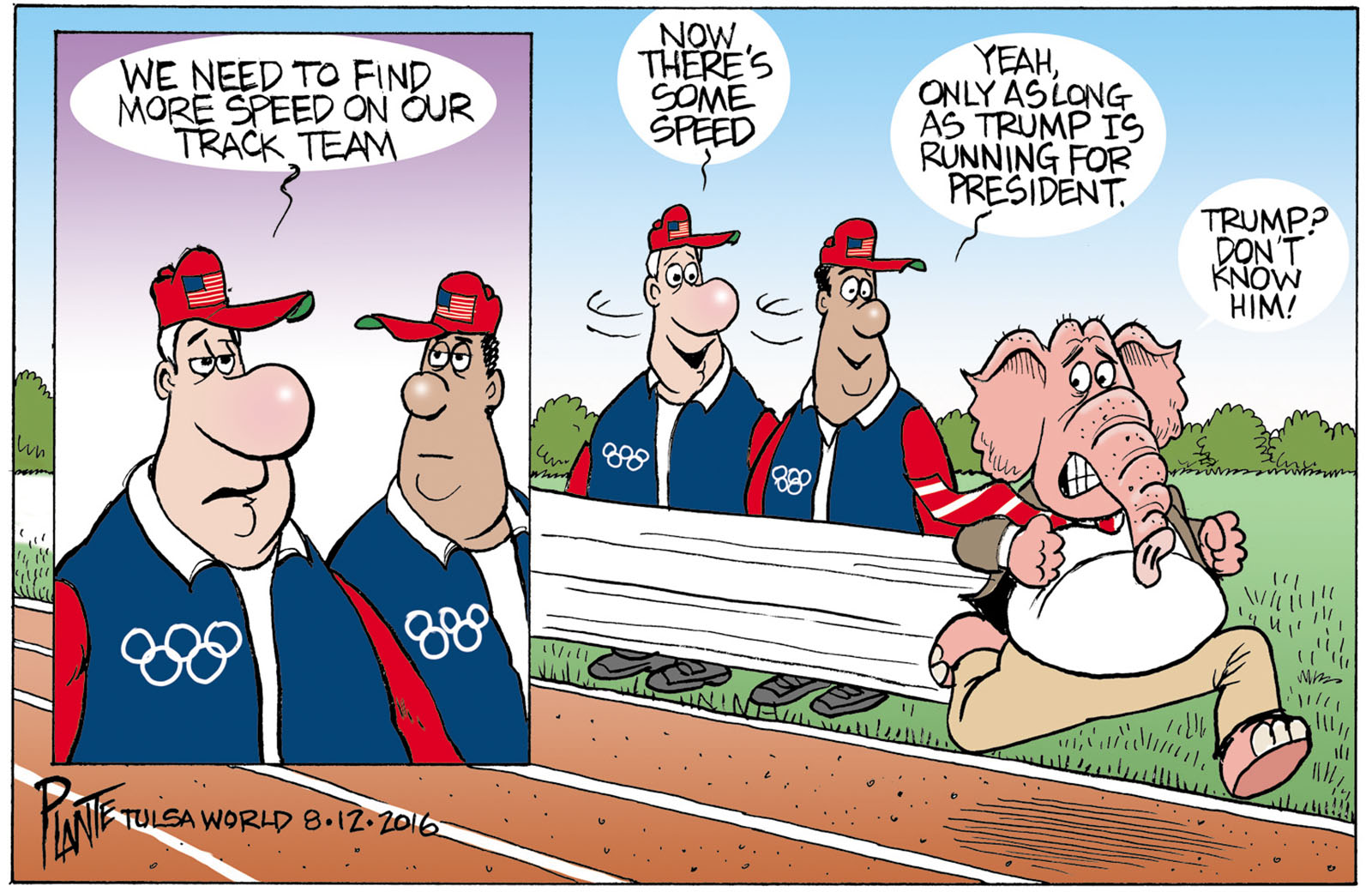Tags/Keywords Campaign 2016, Donald J. Trump, GOP, Republican Presidential Candidate 2016, RNC, The Don, Trump Jokes, Trump Olympics, FILE: PlantB20160814 Reprint This CartoonBuy A PrintBuy The Original REPRINT THIS CARTOON Fill out the info below and I'll be in touch ASAP Your Name (required) Your Email (required) Details, Print, Digital, Circulation, etc. Please leave this field empty. BUY A PRINT OF THIS CARTOON Fill out the info below and I'll be in touch ASAP Your Name(required) Your Email(required) Details, Number of copies, Questions. Please leave this field empty. BUY THE ORIGINAL Originals may or may not be available. Fill out the info below and I'll be in touch ASAP Your Name (required) Your Email (required) Your Message Please leave this field empty.