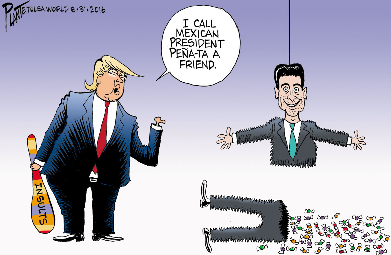 Tags/Keywords Donald J. Trump, GOP, Illegal Immigrants, Immigration, Mexican President Enrique Peña Nieto, Presidential campaign 2016, Republican Party, Republican Presidential Candidate 2016, RNC, Trump goes to Mexico, FILE: PlantB20160901 Reprint This CartoonBuy A PrintBuy The Original REPRINT THIS CARTOON Fill out the info below and I'll be in touch ASAP Your Name (required) Your Email (required) Details, Print, Digital, Circulation, etc. Please leave this field empty. BUY A PRINT OF THIS CARTOON Fill out the info below and I'll be in touch ASAP Your Name(required) Your Email(required) Details, Number of copies, Questions. Please leave this field empty. BUY THE ORIGINAL Originals may or may not be available. Fill out the info below and I'll be in touch ASAP Your Name (required) Your Email (required) Your Message Please leave this field empty. Tags/Keywords Donald J. Trump, GOP, Illegal Immigrants, Immigration, Mexican President Enrique Peña Nieto, Presidential campaign 2016, Republican Party, Republican Presidential Candidate 2016, RNC, Trump goes to Mexico, FILE: PlantB20160901 Reprint This CartoonBuy A PrintBuy The Original REPRINT THIS CARTOON Fill out the info below and I'll be in touch ASAP Your Name (required) Your Email (required) Details, Print, Digital, Circulation, etc. Please leave this field empty. BUY A PRINT OF THIS CARTOON Fill out the info below and I'll be in touch ASAP Your Name(required) Your Email(required) Details, Number of copies, Questions. Please leave this field empty. BUY THE ORIGINAL Originals may or may not be available. Fill out the info below and I'll be in touch ASAP Your Name (required) Your Email (required) Your Message Please leave this field empty.
