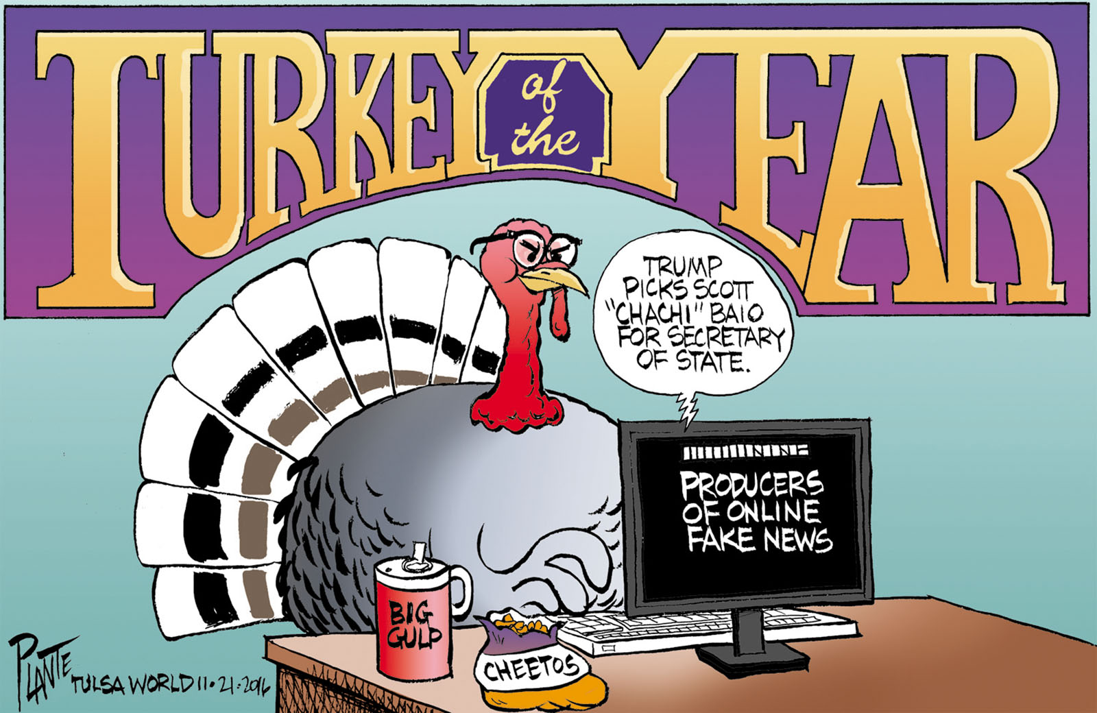 Tags/Keywords facebook, fake new, Google, Producers of online fake news, Turkey of the Year 2016, FILE: PlantB20161124 Reprint This CartoonBuy A PrintBuy The Original REPRINT THIS CARTOON Fill out the info below and I'll be in touch ASAP Your Name (required) Your Email (required) Details, Print, Digital, Circulation, etc. Please leave this field empty. BUY A PRINT OF THIS CARTOON Fill out the info below and I'll be in touch ASAP Your Name(required) Your Email(required) Details, Number of copies, Questions. Please leave this field empty. BUY THE ORIGINAL Originals may or may not be available. Fill out the info below and I'll be in touch ASAP Your Name (required) Your Email (required) Your Message Please leave this field empty.