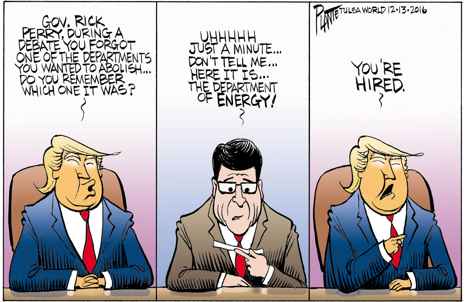 Tags/Keywords crib note, Department of Energy, Governor Rick Perry, President elect Donald J. Trump, Secretary of Energy, Trump and Rick Perry, FILE: PlantB20161214 Reprint This CartoonBuy A PrintBuy The Original REPRINT THIS CARTOON Fill out the info below and I'll be in touch ASAP Your Name (required) Your Email (required) Details, Print, Digital, Circulation, etc. Please leave this field empty. BUY A PRINT OF THIS CARTOON Fill out the info below and I'll be in touch ASAP Your Name(required) Your Email(required) Details, Number of copies, Questions. Please leave this field empty. BUY THE ORIGINAL Originals may or may not be available. Fill out the info below and I'll be in touch ASAP Your Name (required) Your Email (required) Your Message Please leave this field empty.