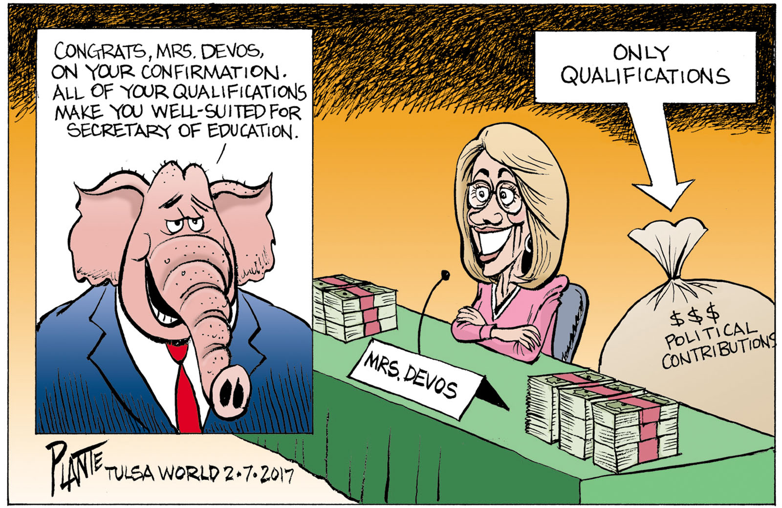 Tags/Keywords GOP, her qualifications, Republican Party, RNC, The new Secretary of Education- Betsy DeVo, United States Senate, Vice President Mike Pence, FILE: PlantB20170208 Reprint This CartoonBuy A PrintBuy The Original REPRINT THIS CARTOON Fill out the info below and I'll be in touch ASAP Your Name (required) Your Email (required) Details, Print, Digital, Circulation, etc. Please leave this field empty. BUY A PRINT OF THIS CARTOON Fill out the info below and I'll be in touch ASAP Your Name(required) Your Email(required) Details, Number of copies, Questions. Please leave this field empty. BUY THE ORIGINAL Originals may or may not be available. Fill out the info below and I'll be in touch ASAP Your Name (required) Your Email (required) Your Message Please leave this field empty.