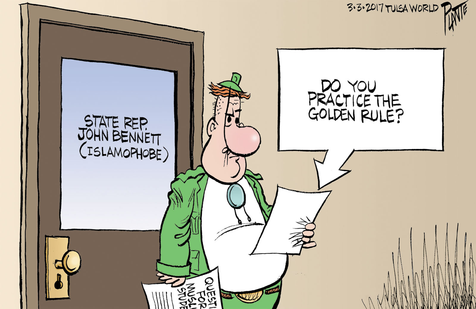 Tags/Keywords CAIR, Council on American-Islamic Relations of Oklahoma, Islamophobe, Muslim Day, OK, Oklahoma Legislature, Oklahoma State Rep. John Bennett, FILE: PlantB20170305 Reprint This CartoonBuy A PrintBuy The Original REPRINT THIS CARTOON Fill out the info below and I'll be in touch ASAP Your Name (required) Your Email (required) Details, Print, Digital, Circulation, etc. Please leave this field empty. BUY A PRINT OF THIS CARTOON Fill out the info below and I'll be in touch ASAP Your Name(required) Your Email(required) Details, Number of copies, Questions. Please leave this field empty. BUY THE ORIGINAL Originals may or may not be available. Fill out the info below and I'll be in touch ASAP Your Name (required) Your Email (required) Your Message Please leave this field empty.