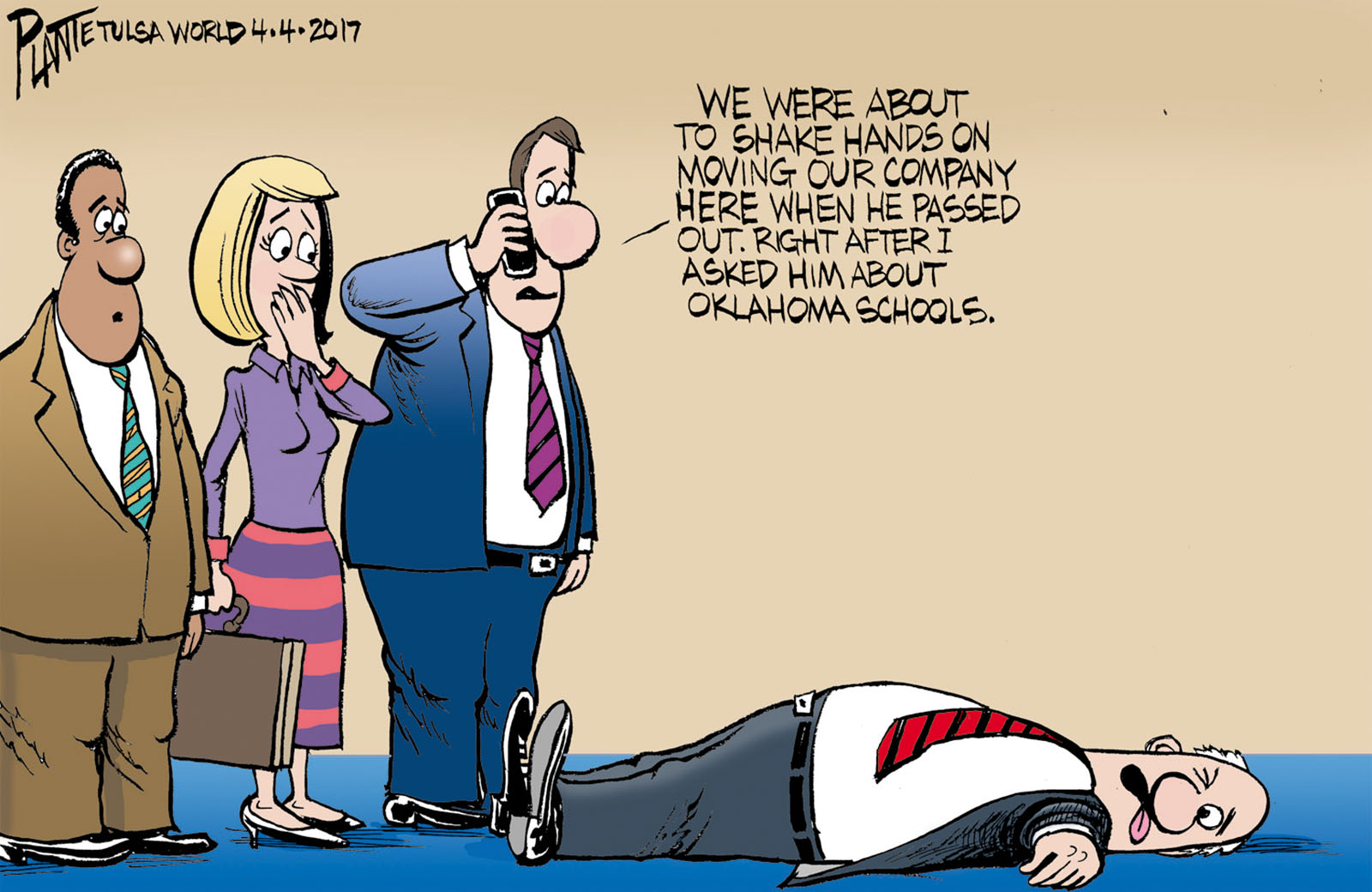 Tags/Keywords new industry, OK, Oklahoma Chamber of Commerce, Oklahoma Public schools, Selling Oklahoma, TPS, Tulsa Chamber of Commerce, Tulsa Public Schools, underfunded schools, FILE: PlantB20170405 Reprint This CartoonBuy A PrintBuy The Original REPRINT THIS CARTOON Fill out the info below and I'll be in touch ASAP Your Name (required) Your Email (required) Details, Print, Digital, Circulation, etc. Please leave this field empty. BUY A PRINT OF THIS CARTOON Fill out the info below and I'll be in touch ASAP Your Name(required) Your Email(required) Details, Number of copies, Questions. Please leave this field empty. BUY THE ORIGINAL Originals may or may not be available. Fill out the info below and I'll be in touch ASAP Your Name (required) Your Email (required) Your Message Please leave this field empty.