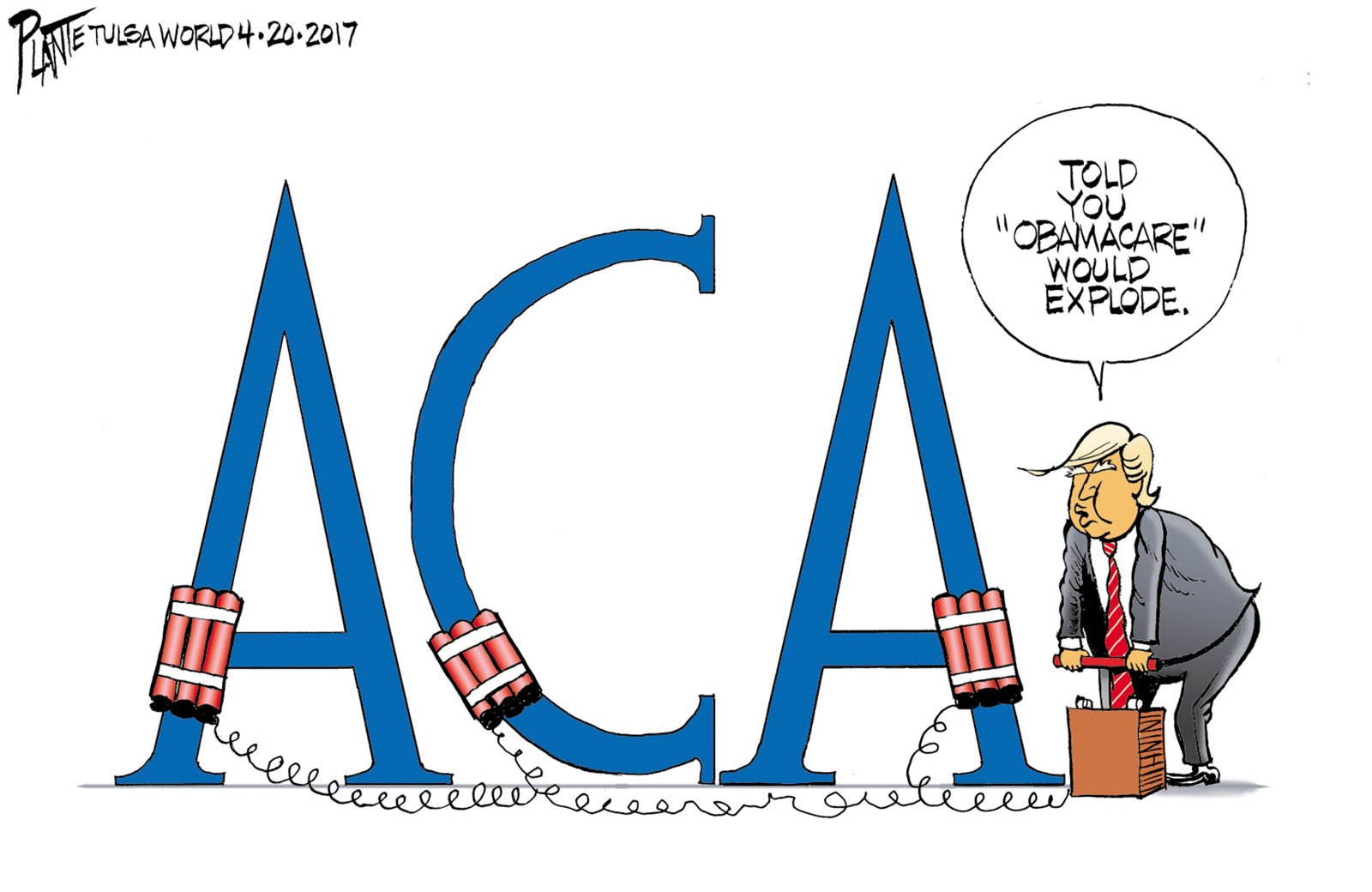 Tags/Keywords Affordable Care Act, Healthcare, House Freedom Caucus, President Barack Obama, President Donald J. Trump, repeal and replace, threat to cancel subsides, Trump and the Repeal of Obamacare, FILE: PlantB20170421 Reprint This CartoonBuy A PrintBuy The Original REPRINT THIS CARTOON Fill out the info below and I'll be in touch ASAP Your Name (required) Your Email (required) Details, Print, Digital, Circulation, etc. Please leave this field empty. BUY A PRINT OF THIS CARTOON Fill out the info below and I'll be in touch ASAP Your Name(required) Your Email(required) Details, Number of copies, Questions. Please leave this field empty. BUY THE ORIGINAL Originals may or may not be available. Fill out the info below and I'll be in touch ASAP Your Name (required) Your Email (required) Your Message Please leave this field empty.