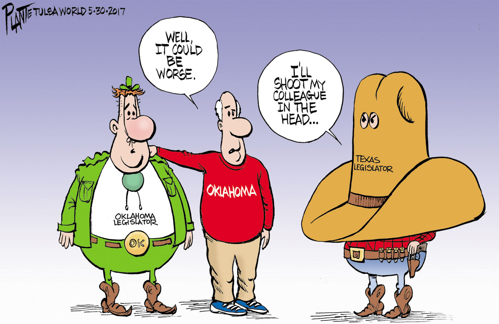 Tags/Keywords 2017 Legislative session, OK, Oklahoma Legislature, Oklahoma vs. Texas, Texas Legislature, TX, FILE: PlantB20170531 Reprint This CartoonBuy A PrintBuy The Original REPRINT THIS CARTOON Fill out the info below and I'll be in touch ASAP Your Name (required) Your Email (required) Details, Print, Digital, Circulation, etc. Please leave this field empty. BUY A PRINT OF THIS CARTOON Fill out the info below and I'll be in touch ASAP Your Name(required) Your Email(required) Details, Number of copies, Questions. Please leave this field empty. BUY THE ORIGINAL Originals may or may not be available. Fill out the info below and I'll be in touch ASAP Your Name (required) Your Email (required) Your Message Please leave this field empty.