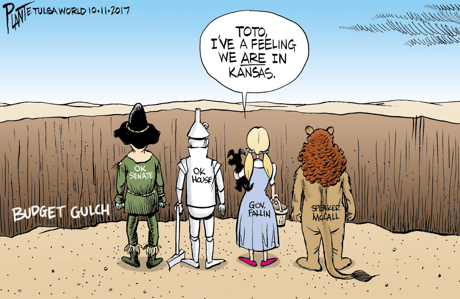 Tags/Keywords Budget Gulch, Governor Mary Fallin, House Speaker Charles McCall, OK, Oklahoma House, Oklahoma Legislature, Oklahoma Senate, FILE: PlantB20171012 Reprint This CartoonBuy A PrintBuy The Original REPRINT THIS CARTOON Fill out the info below and I'll be in touch ASAP Your Name (required) Your Email (required) Details, Print, Digital, Circulation, etc. Please leave this field empty. BUY A PRINT OF THIS CARTOON Fill out the info below and I'll be in touch ASAP Your Name(required) Your Email(required) Details, Number of copies, Questions. Please leave this field empty. BUY THE ORIGINAL Originals may or may not be available. Fill out the info below and I'll be in touch ASAP Your Name (required) Your Email (required) Your Message Please leave this field empty.