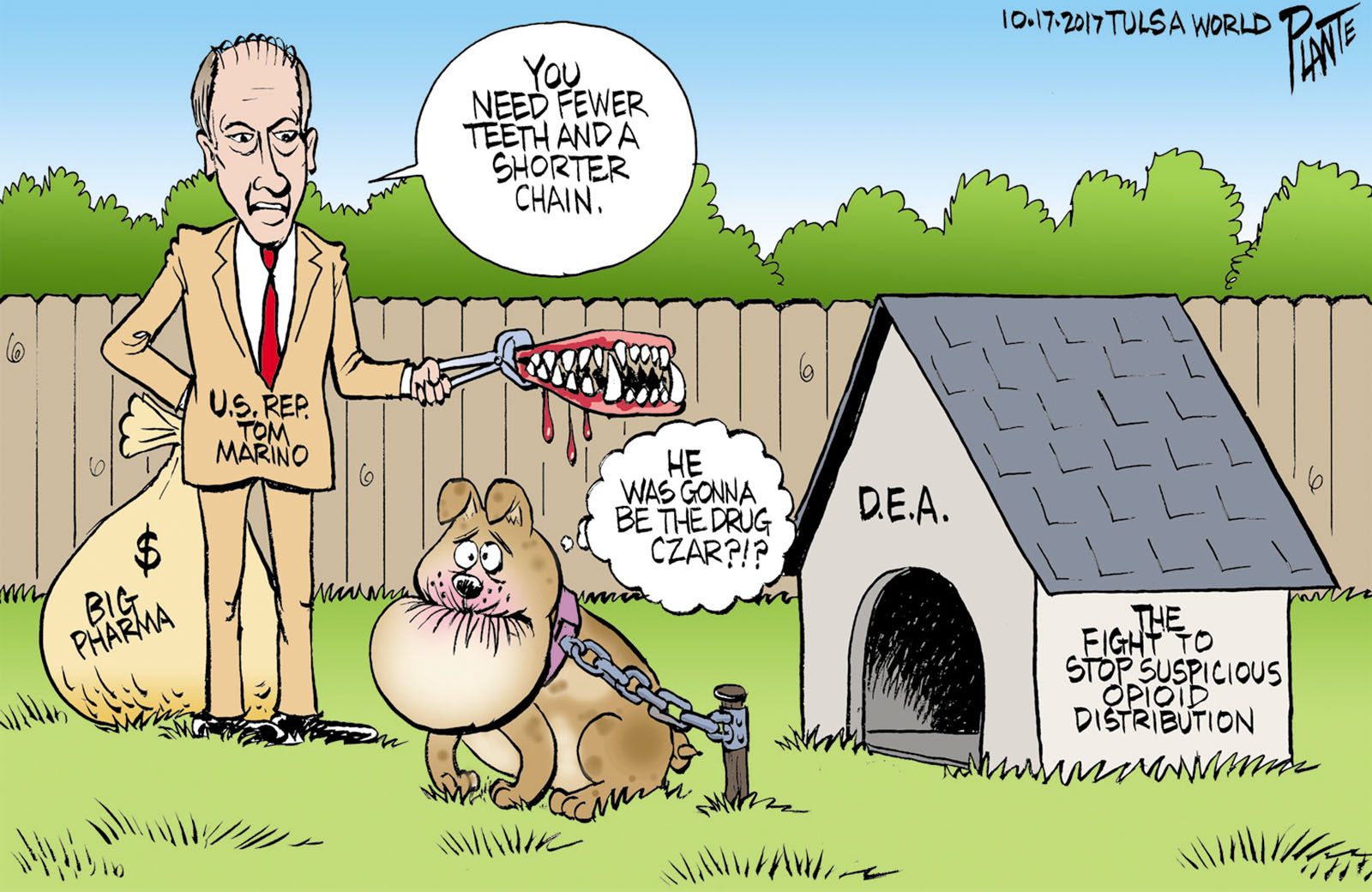 Tags/Keywords D.E.A., Drug Enforcement Administration, Ensuring Patient Access and Effective Drug Enforcement Act, opioid epidemic, The Drug Czar?, U.S. Rep. Tom Marino- PA-R, Under the Controlled Substances Act of 1970, Vicodin and oxycodone, FILE: PlantB20171018 Reprint This CartoonBuy A PrintBuy The Original REPRINT THIS CARTOON Fill out the info below and I'll be in touch ASAP Your Name (required) Your Email (required) Details, Print, Digital, Circulation, etc. Please leave this field empty. BUY A PRINT OF THIS CARTOON Fill out the info below and I'll be in touch ASAP Your Name(required) Your Email(required) Details, Number of copies, Questions. Please leave this field empty. BUY THE ORIGINAL Originals may or may not be available. Fill out the info below and I'll be in touch ASAP Your Name (required) Your Email (required) Your Message Please leave this field empty.