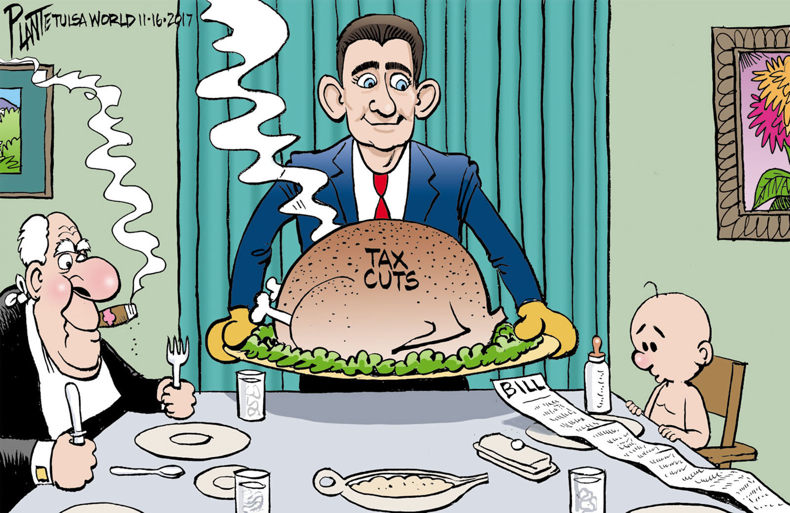 Tags/Keywords Budget Deficit, debt, Deficit, generational debit, Speaker Paul Ryan, Tax Cut Turkey, U.S. House, United States House of Representatives, FILE: PlantB20171117 Reprint This CartoonBuy A PrintBuy The Original REPRINT THIS CARTOON Fill out the info below and I'll be in touch ASAP Your Name (required) Your Email (required) Details, Print, Digital, Circulation, etc. Please leave this field empty. BUY A PRINT OF THIS CARTOON Fill out the info below and I'll be in touch ASAP Your Name(required) Your Email(required) Details, Number of copies, Questions. Please leave this field empty. BUY THE ORIGINAL Originals may or may not be available. Fill out the info below and I'll be in touch ASAP Your Name (required) Your Email (required) Your Message Please leave this field empty.