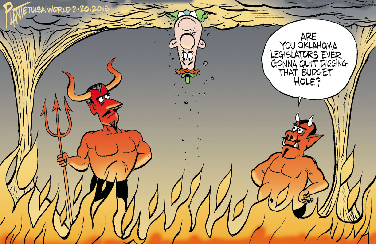 Tags/Keywords all the way to hades, Budget Crisis, digging deeper, hell, Oklahoma budget hole, Oklahoma going to⬦, FILE: PlantB20180221 Reprint This CartoonBuy A PrintBuy The Original REPRINT THIS CARTOON Fill out the info below and I'll be in touch ASAP Your Name (required) Your Email (required) Details, Print, Digital, Circulation, etc. Please leave this field empty. BUY A PRINT OF THIS CARTOON Fill out the info below and I'll be in touch ASAP Your Name(required) Your Email(required) Details, Number of copies, Questions. Please leave this field empty. BUY THE ORIGINAL Originals may or may not be available. Fill out the info below and I'll be in touch ASAP Your Name (required) Your Email (required) Your Message Please leave this field empty.
