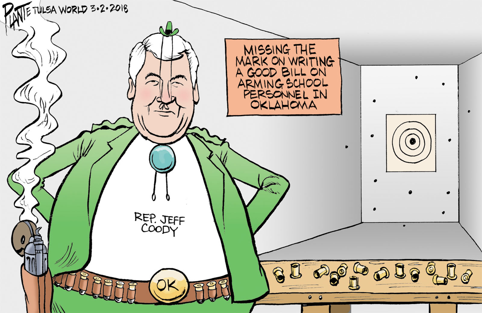 Tags/Keywords HB 3192, OK, Oklahoma, Rep. Jeff Coody and guns, weakening rules governing who can carry guns in Oklahoma schools, FILE: PlantB20180303 Reprint This CartoonBuy A PrintBuy The Original REPRINT THIS CARTOON Fill out the info below and I'll be in touch ASAP Your Name (required) Your Email (required) Details, Print, Digital, Circulation, etc. Please leave this field empty. BUY A PRINT OF THIS CARTOON Fill out the info below and I'll be in touch ASAP Your Name(required) Your Email(required) Details, Number of copies, Questions. Please leave this field empty. BUY THE ORIGINAL Originals may or may not be available. Fill out the info below and I'll be in touch ASAP Your Name (required) Your Email (required) Your Message Please leave this field empty.