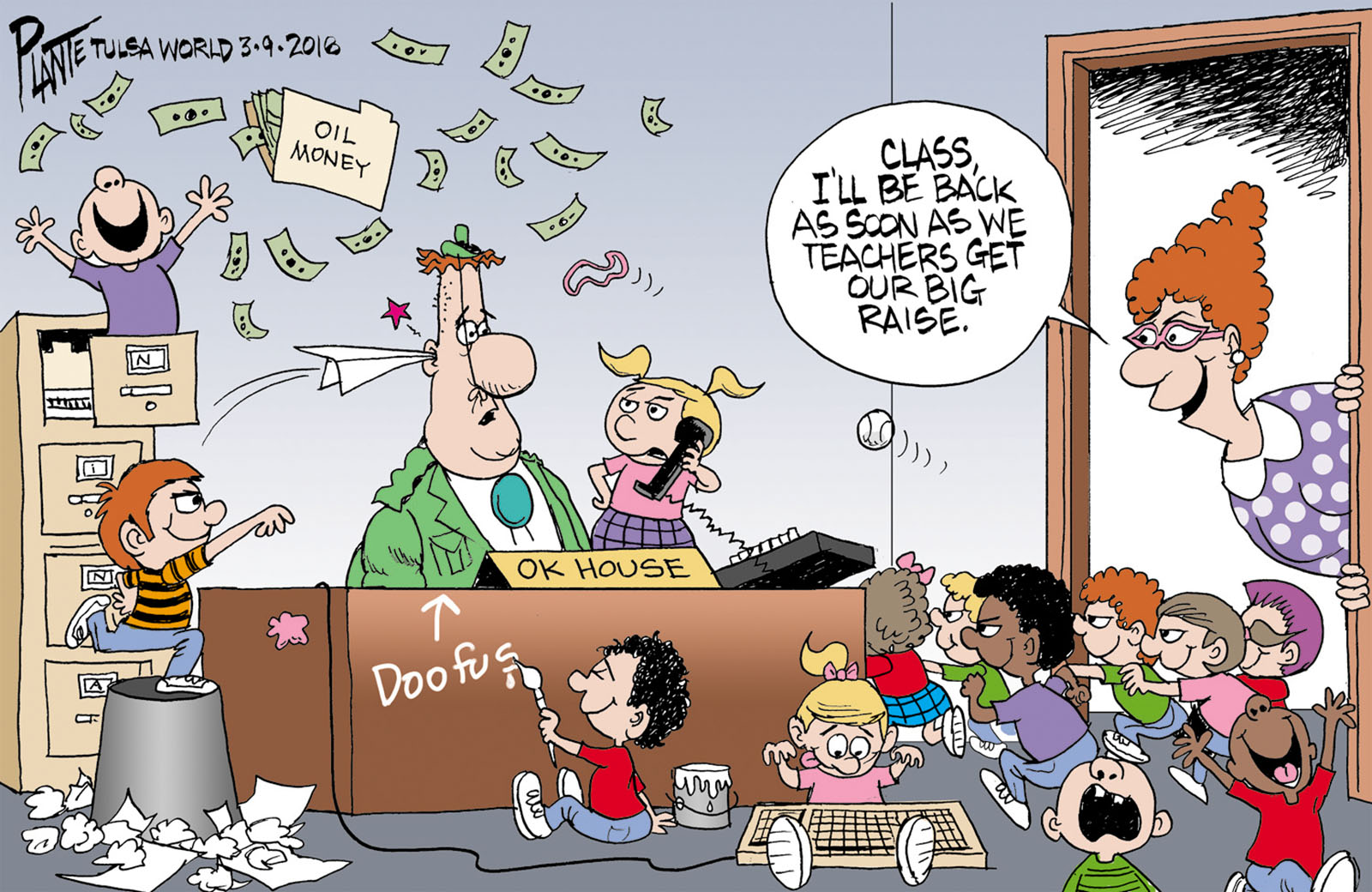 Tags/Keywords oil money, OK, Oklahoma House, Oklahoma Legislature, Oklahoma Teacher has a good idea, teachers' raises, FILE: PlantB20180310 Reprint This CartoonBuy A PrintBuy The Original REPRINT THIS CARTOON Fill out the info below and I'll be in touch ASAP Your Name (required) Your Email (required) Details, Print, Digital, Circulation, etc. Please leave this field empty. BUY A PRINT OF THIS CARTOON Fill out the info below and I'll be in touch ASAP Your Name(required) Your Email(required) Details, Number of copies, Questions. Please leave this field empty. BUY THE ORIGINAL Originals may or may not be available. Fill out the info below and I'll be in touch ASAP Your Name (required) Your Email (required) Your Message Please leave this field empty.
