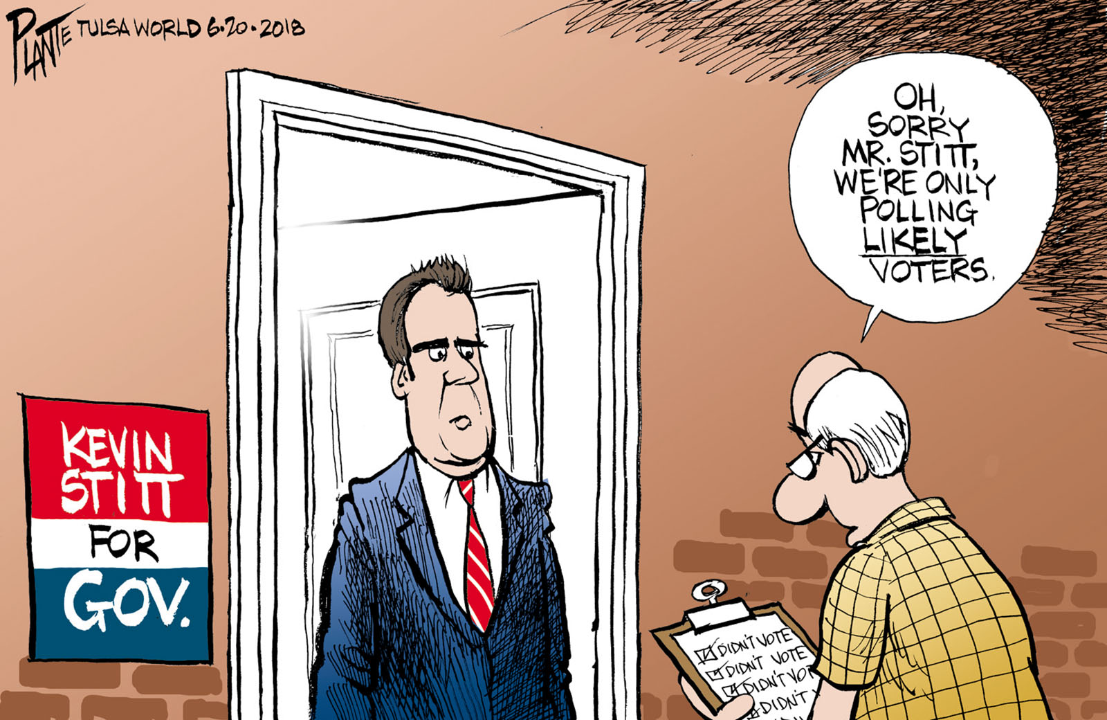 Tags/Keywords A pollster and Kevin Stitt, OK election, Oklahoma gubernatorial primary 2018, poor voting record, FILE: PlantB20180621 Reprint This CartoonBuy A PrintBuy The Original REPRINT THIS CARTOON Fill out the info below and I'll be in touch ASAP Your Name (required) Your Email (required) Details, Print, Digital, Circulation, etc. Please leave this field empty. BUY A PRINT OF THIS CARTOON Fill out the info below and I'll be in touch ASAP Your Name(required) Your Email(required) Details, Number of copies, Questions. Please leave this field empty. BUY THE ORIGINAL Originals may or may not be available. Fill out the info below and I'll be in touch ASAP Your Name (required) Your Email (required) Your Message Please leave this field empty.