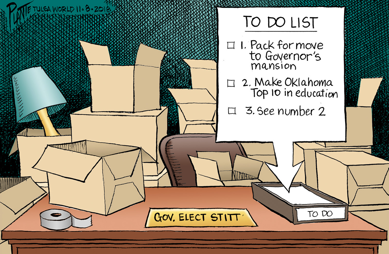 Tags/Keywords OK, Oklahoma, schools, To Do List, Top 10 in Education, FILE: Plante20181108 Reprint This CartoonBuy A PrintBuy The Original REPRINT THIS CARTOON Fill out the info below and I'll be in touch ASAP Your Name (required) Your Email (required) Details, Print, Digital, Circulation, etc. Please leave this field empty. BUY A PRINT OF THIS CARTOON Fill out the info below and I'll be in touch ASAP Your Name(required) Your Email(required) Details, Number of copies, Questions. Please leave this field empty. BUY THE ORIGINAL Originals may or may not be available. Fill out the info below and I'll be in touch ASAP Your Name (required) Your Email (required) Your Message Please leave this field empty.