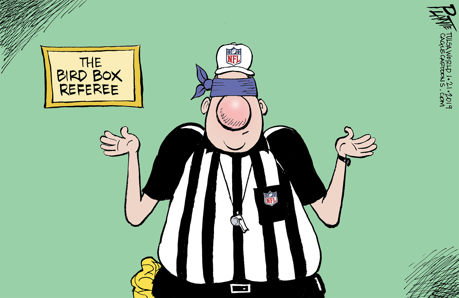 Tags/Keywords bad calls, Kansas City Chiefs, Los Angeles Rams, National Football League, New England Patriots, New Orleans Saints, NFC Championship, NFL referees, Super Bowl LIII, FILE: Plante20190122 Reprint This CartoonBuy A PrintBuy The Original REPRINT THIS CARTOON Fill out the info below and I'll be in touch ASAP Your Name (required) Your Email (required) Details, Print, Digital, Circulation, etc. Please leave this field empty. BUY A PRINT OF THIS CARTOON Fill out the info below and I'll be in touch ASAP Your Name(required) Your Email(required) Details, Number of copies, Questions. Please leave this field empty. BUY THE ORIGINAL Originals may or may not be available. Fill out the info below and I'll be in touch ASAP Your Name (required) Your Email (required) Your Message Please leave this field empty.