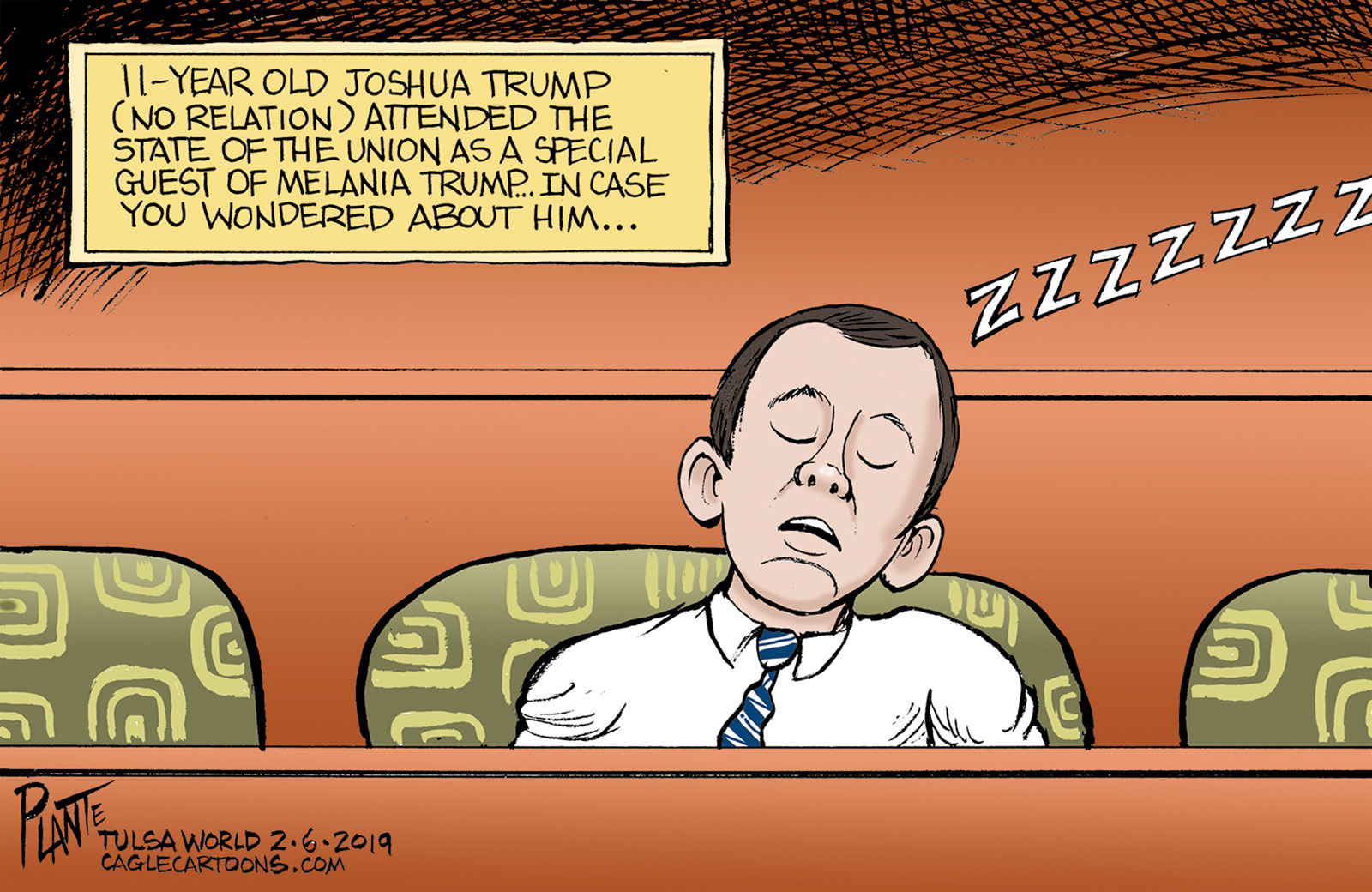 Tags/Keywords 11-year old Joshua Trump, bullying, President Donald J. Trump, SOTU, The State of the Union 2019, FILE: Plante20190207 Reprint This CartoonBuy A PrintBuy The Original REPRINT THIS CARTOON Fill out the info below and I'll be in touch ASAP Your Name (required) Your Email (required) Details, Print, Digital, Circulation, etc. Please leave this field empty. BUY A PRINT OF THIS CARTOON Fill out the info below and I'll be in touch ASAP Your Name(required) Your Email(required) Details, Number of copies, Questions. Please leave this field empty. BUY THE ORIGINAL Originals may or may not be available. Fill out the info below and I'll be in touch ASAP Your Name (required) Your Email (required) Your Message Please leave this field empty.