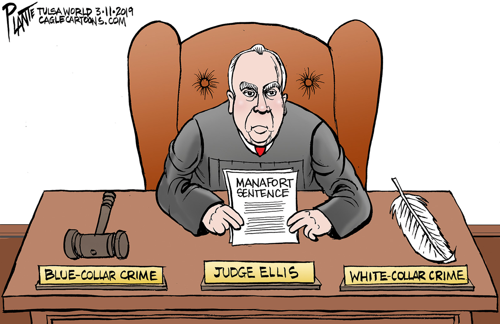 Tags/Keywords Judge T.S. Ellis III, Manafort sentencing, Paul Manafort, President Donald J. Trump, Robert S. Mueller III, FILE: Plante20190312 Reprint This CartoonBuy A PrintBuy The Original REPRINT THIS CARTOON Fill out the info below and I'll be in touch ASAP Your Name (required) Your Email (required) Details, Print, Digital, Circulation, etc. Please leave this field empty. BUY A PRINT OF THIS CARTOON Fill out the info below and I'll be in touch ASAP Your Name(required) Your Email(required) Details, Number of copies, Questions. Please leave this field empty. BUY THE ORIGINAL Originals may or may not be available. Fill out the info below and I'll be in touch ASAP Your Name (required) Your Email (required) Your Message Please leave this field empty.