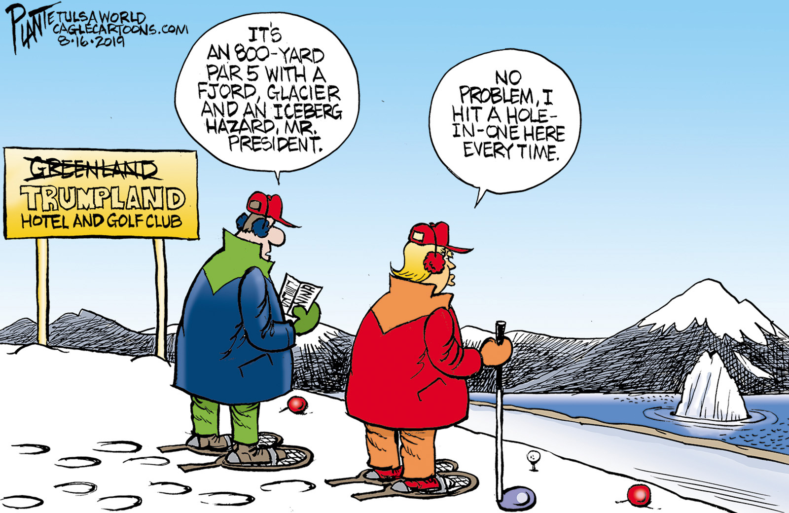 Tags/Keywords Danish territory, fjord, glacier, golf, iceberg, President Donald J. Trump, Trump and Greenland, Trumpland Hotel and Golf Club, FILE: Plante20190818 Reprint This CartoonBuy A PrintBuy The Original REPRINT THIS CARTOON Fill out the info below and I'll be in touch ASAP Your Name (required) Your Email (required) Details, Print, Digital, Circulation, etc. Please leave this field empty. BUY A PRINT OF THIS CARTOON Fill out the info below and I'll be in touch ASAP Your Name(required) Your Email(required) Details, Number of copies, Questions. Please leave this field empty. BUY THE ORIGINAL Originals may or may not be available. Fill out the info below and I'll be in touch ASAP Your Name (required) Your Email (required) Your Message Please leave this field empty.