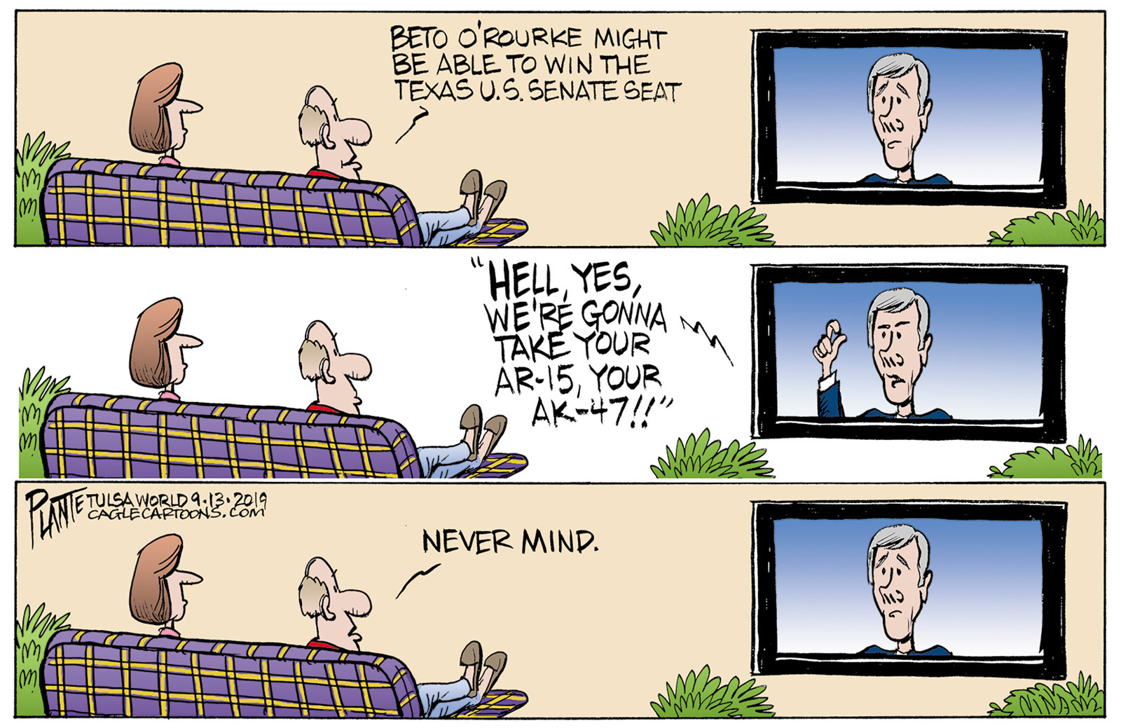 Tags/Keywords AK-47, AR–15, Beto and guns, Campaign 2020, Candidate for President, Congressman Beto O'Rourke, Democratic Presidential Primary 2020, Election 2020, FILE: Plante20190915 Reprint This CartoonBuy A PrintBuy The Original REPRINT THIS CARTOON Fill out the info below and I'll be in touch ASAP Your Name (required) Your Email (required) Details, Print, Digital, Circulation, etc. Please leave this field empty. BUY A PRINT OF THIS CARTOON Fill out the info below and I'll be in touch ASAP Your Name(required) Your Email(required) Details, Number of copies, Questions. Please leave this field empty. BUY THE ORIGINAL Originals may or may not be available. Fill out the info below and I'll be in touch ASAP Your Name (required) Your Email (required) Your Message Please leave this field empty.