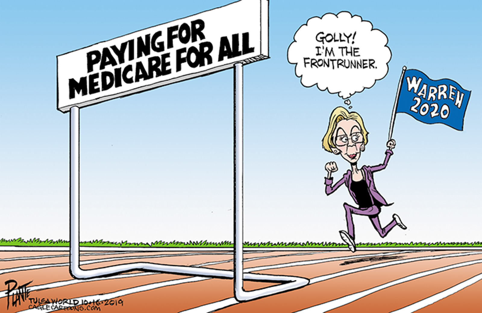 Tags/Keywords 2020 Campaign, 2020 Democratic Presidential Primary, DNC, Elizabeth Warren's hurdle, Medicare for all, FILE: Plante20191017 Reprint This CartoonBuy A PrintBuy The Original REPRINT THIS CARTOON Fill out the info below and I'll be in touch ASAP Your Name (required) Your Email (required) Details, Print, Digital, Circulation, etc. Please leave this field empty. BUY A PRINT OF THIS CARTOON Fill out the info below and I'll be in touch ASAP Your Name(required) Your Email(required) Details, Number of copies, Questions. Please leave this field empty. BUY THE ORIGINAL Originals may or may not be available. Fill out the info below and I'll be in touch ASAP Your Name (required) Your Email (required) Your Message Please leave this field empty.