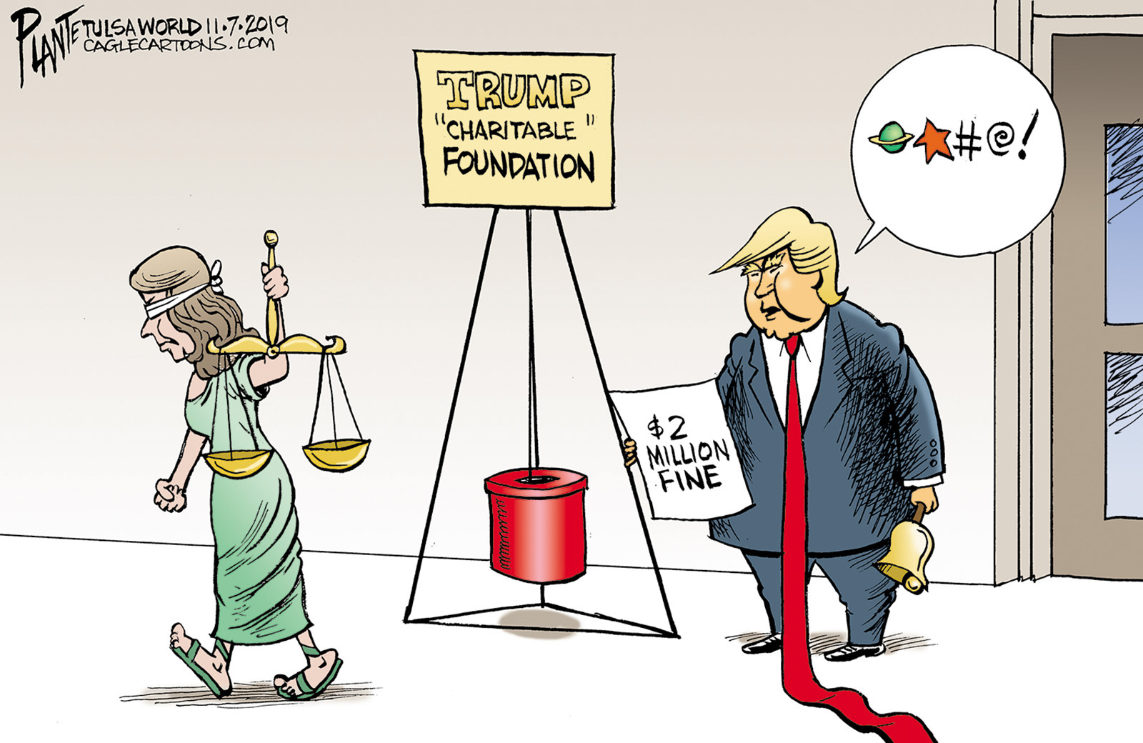 Tags/Keywords charitable foundation, New York state Judge Saliann Scarpulla, President Donald J. Trump, Trump Foundation, FILE: Plante20191108 Reprint This CartoonBuy A PrintBuy The Original REPRINT THIS CARTOON Fill out the info below and I'll be in touch ASAP Your Name (required) Your Email (required) Details, Print, Digital, Circulation, etc. Please leave this field empty. BUY A PRINT OF THIS CARTOON Fill out the info below and I'll be in touch ASAP Your Name(required) Your Email(required) Details, Number of copies, Questions. Please leave this field empty. BUY THE ORIGINAL Originals may or may not be available. Fill out the info below and I'll be in touch ASAP Your Name (required) Your Email (required) Your Message Please leave this field empty.
