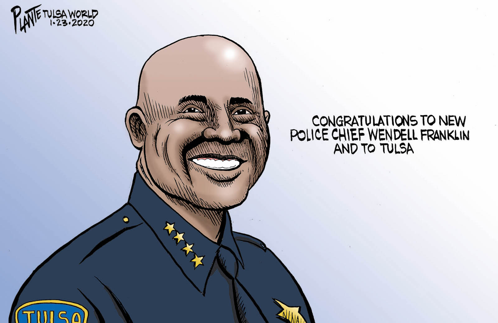 Tags/Keywords Former Police Chief Chuck Jordan, Mayor G.T. Bynum, New Police Chief Wendell Franklin, Tulsa Oklahoma, FILE: Plante20200124 Reprint This CartoonBuy A PrintBuy The Original REPRINT THIS CARTOON Fill out the info below and I'll be in touch ASAP Your Name (required) Your Email (required) Details, Print, Digital, Circulation, etc. Please leave this field empty. BUY A PRINT OF THIS CARTOON Fill out the info below and I'll be in touch ASAP Your Name(required) Your Email(required) Details, Number of copies, Questions. Please leave this field empty. BUY THE ORIGINAL Originals may or may not be available. Fill out the info below and I'll be in touch ASAP Your Name (required) Your Email (required) Your Message Please leave this field empty.