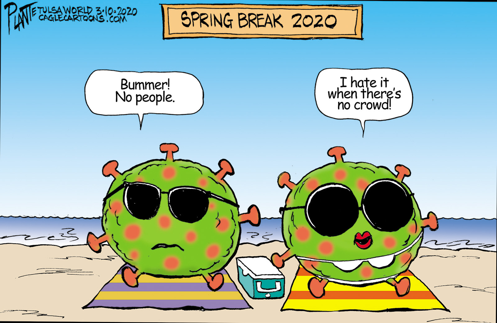 Tags/Keywords at the beach, by the sea, Corona Virus Spring Break, crowd avoidance, Purell, shortage, FILE: Plante20200311 Reprint This CartoonBuy A PrintBuy The Original REPRINT THIS CARTOON Fill out the info below and I'll be in touch ASAP Your Name (required) Your Email (required) Details, Print, Digital, Circulation, etc. Please leave this field empty. BUY A PRINT OF THIS CARTOON Fill out the info below and I'll be in touch ASAP Your Name(required) Your Email(required) Details, Number of copies, Questions. Please leave this field empty. BUY THE ORIGINAL Originals may or may not be available. Fill out the info below and I'll be in touch ASAP Your Name (required) Your Email (required) Your Message Please leave this field empty.