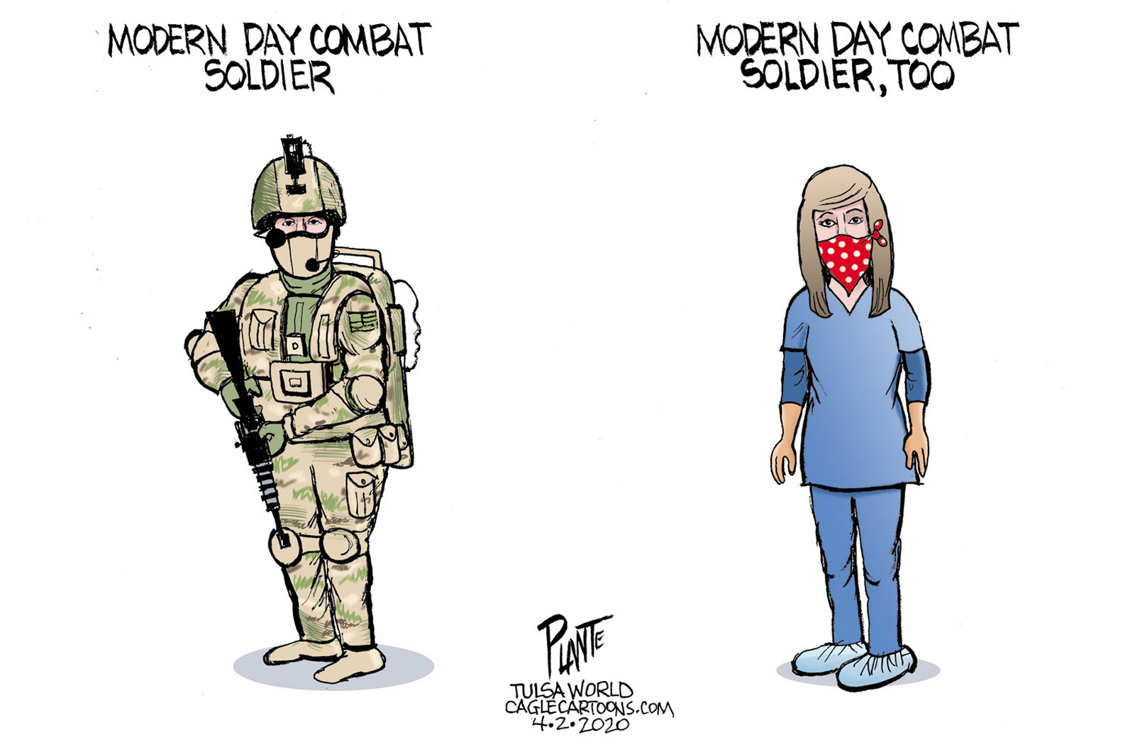 Tags/Keywords bandana, corona visus, covid-19, masks, Modern Day Combat, nurse, PPE, FILE: Plante20200403 Reprint This CartoonBuy A PrintBuy The Original REPRINT THIS CARTOON Fill out the info below and I'll be in touch ASAP Your Name (required) Your Email (required) Details, Print, Digital, Circulation, etc. Please leave this field empty. BUY A PRINT OF THIS CARTOON Fill out the info below and I'll be in touch ASAP Your Name(required) Your Email(required) Details, Number of copies, Questions. Please leave this field empty. BUY THE ORIGINAL Originals may or may not be available. Fill out the info below and I'll be in touch ASAP Your Name (required) Your Email (required) Your Message Please leave this field empty.