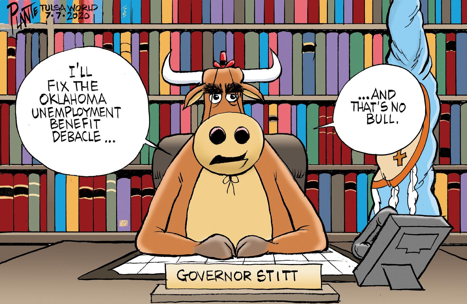 Tags/Keywords debacle, Governor Kevin Stitt, OESC, OK, Oklahoma Employment Security Commission, Oklahoma Unemployment benefits, FILE: Plante20200708 Reprint This CartoonBuy A PrintBuy The Original REPRINT THIS CARTOON Fill out the info below and I'll be in touch ASAP Your Name (required) Your Email (required) Details, Print, Digital, Circulation, etc. Please leave this field empty. BUY A PRINT OF THIS CARTOON Fill out the info below and I'll be in touch ASAP Your Name(required) Your Email(required) Details, Number of copies, Questions. Please leave this field empty. BUY THE ORIGINAL Originals may or may not be available. Fill out the info below and I'll be in touch ASAP Your Name (required) Your Email (required) Your Message Please leave this field empty.