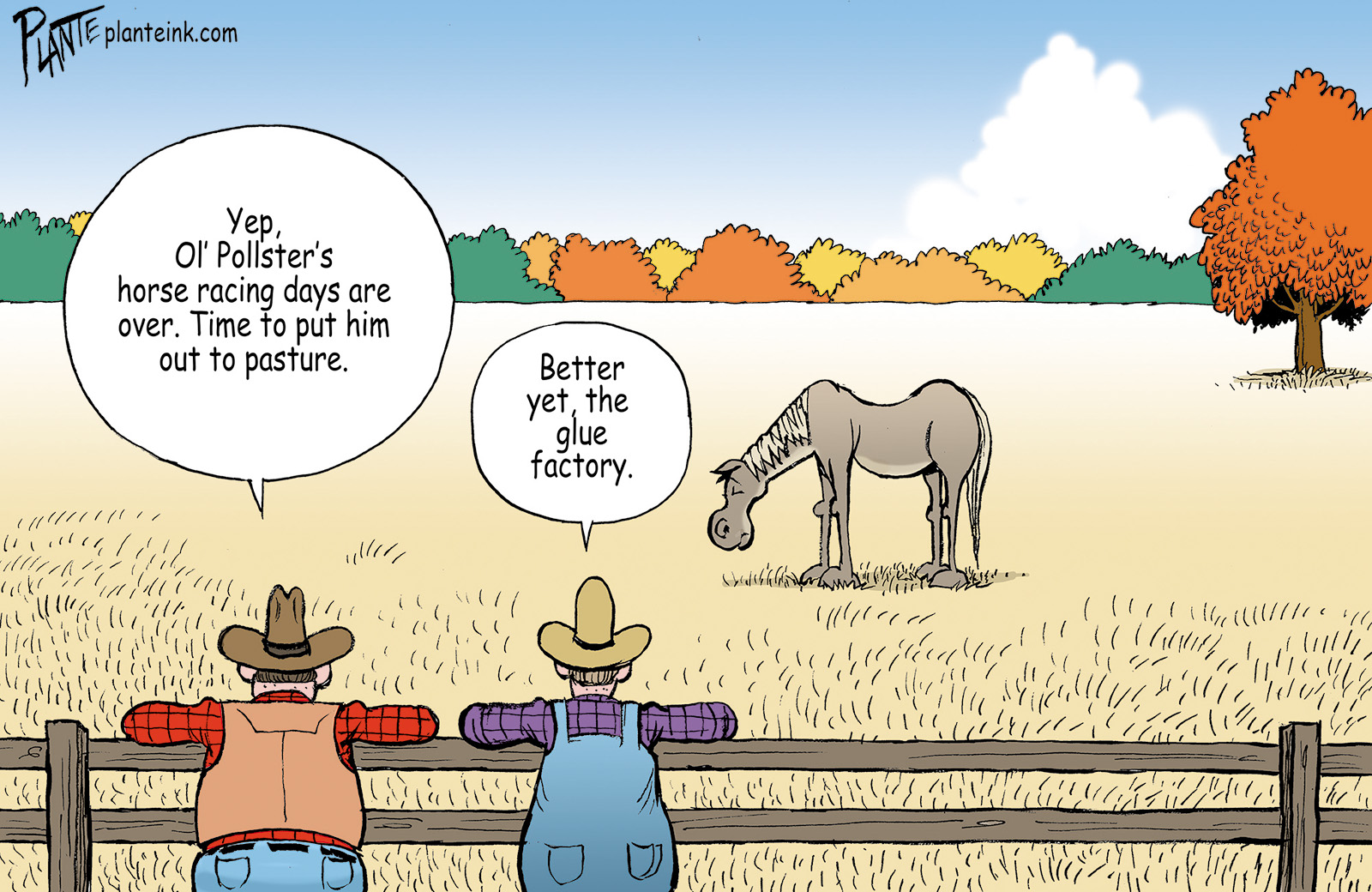 Tags/Keywords Election 2016, Election 2020, glue factory, Ol' Pollster, out to pasture, Trump vs. Biden, Trump vs. Clinton, FILE: Plante20201106 Reprint This CartoonBuy A PrintBuy The Original REPRINT THIS CARTOON Fill out the info below and I'll be in touch ASAP Your Name (required) Your Email (required) Details, Print, Digital, Circulation, etc. Please leave this field empty. BUY A PRINT OF THIS CARTOON Fill out the info below and I'll be in touch ASAP Your Name(required) Your Email(required) Details, Number of copies, Questions. Please leave this field empty. BUY THE ORIGINAL Originals may or may not be available. Fill out the info below and I'll be in touch ASAP Your Name (required) Your Email (required) Your Message Please leave this field empty.