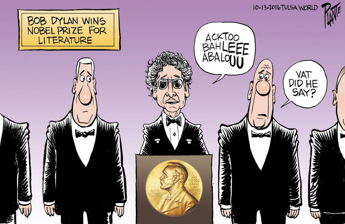 Bob Dylan wins Nobel Prize,Bob Dylan wins Nobel Prize, 2016 Nobel Prize for Literature, Oslo Norway, Plante 20161014