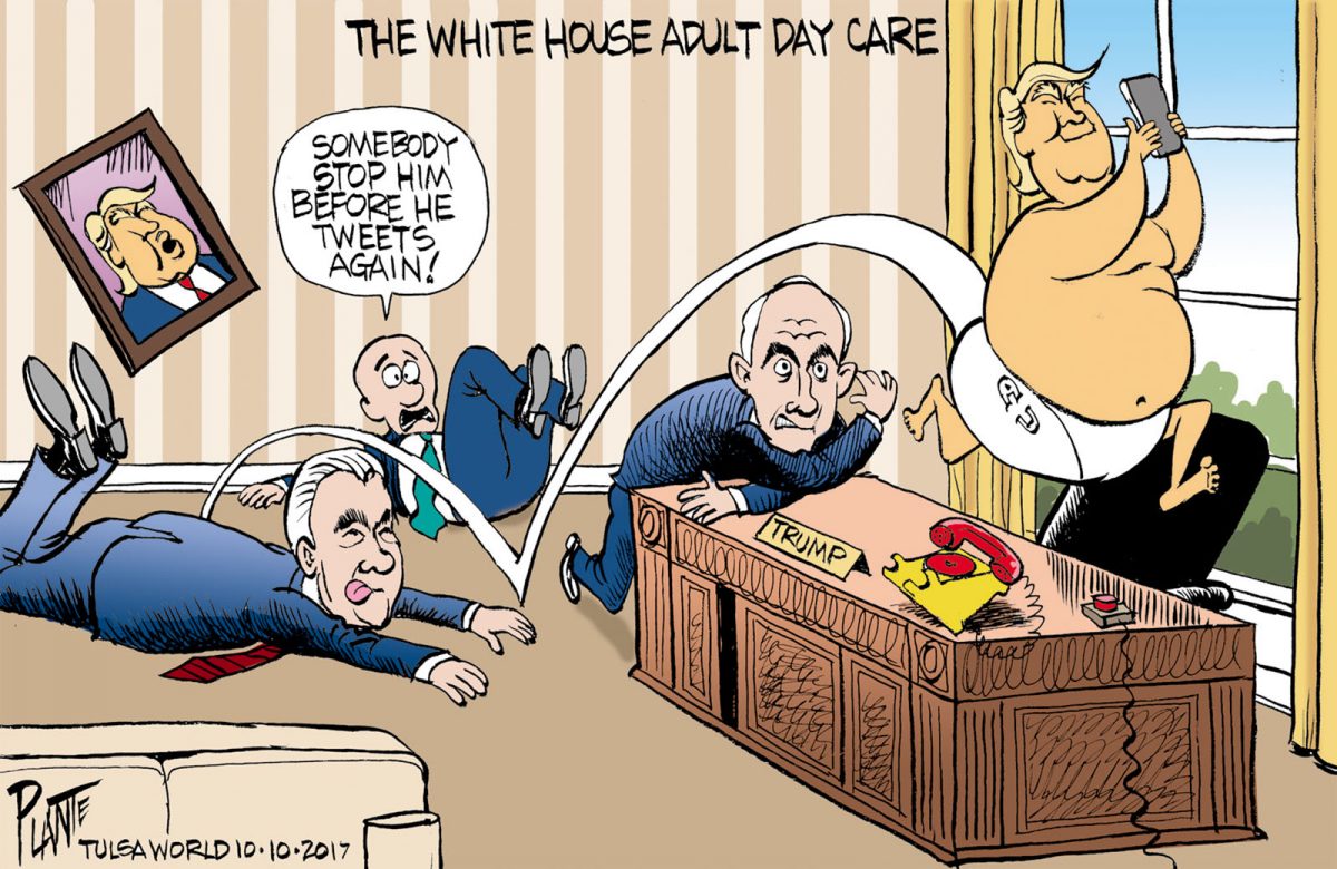 Days at the White House,Days at the White House, President Donald J. Trump, Senator Bob Corker-TN-R, "called the White House an adult day care cemter, Secretary of State Rex Tillerson, Chief of Staff John Kelly, Plante 20171011