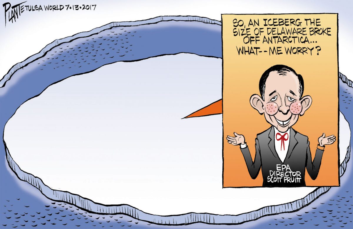 Scott Pruitt and the Iceberg,Scott Pruitt and the Iceberg, EPA Director Scott Pruitt, Environmental Protection Agency, Antarctica, global climate change, CO2, Antarctica⬔s Weddell Sea, Antarctic Peninsula, Larsen C ice shelf, Plante 20170714