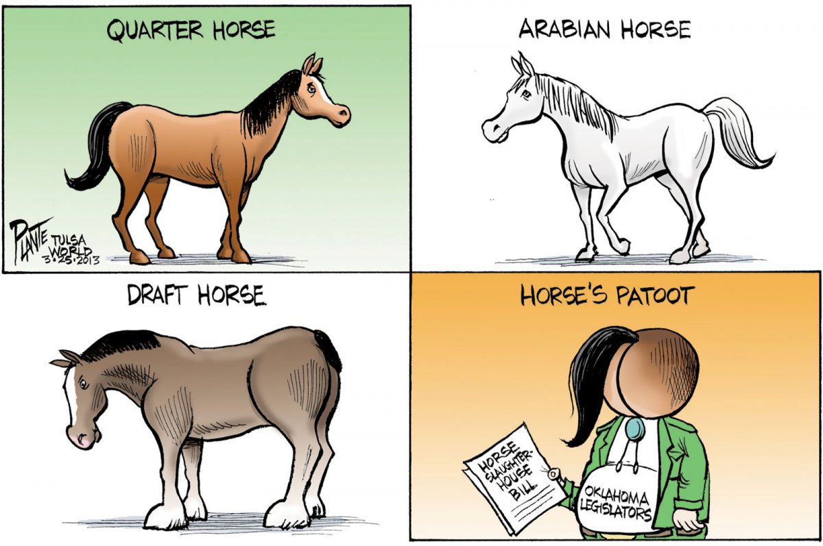 Below you'll find a list of all cartoons that have been tagged as “horse slaughterhouse”
