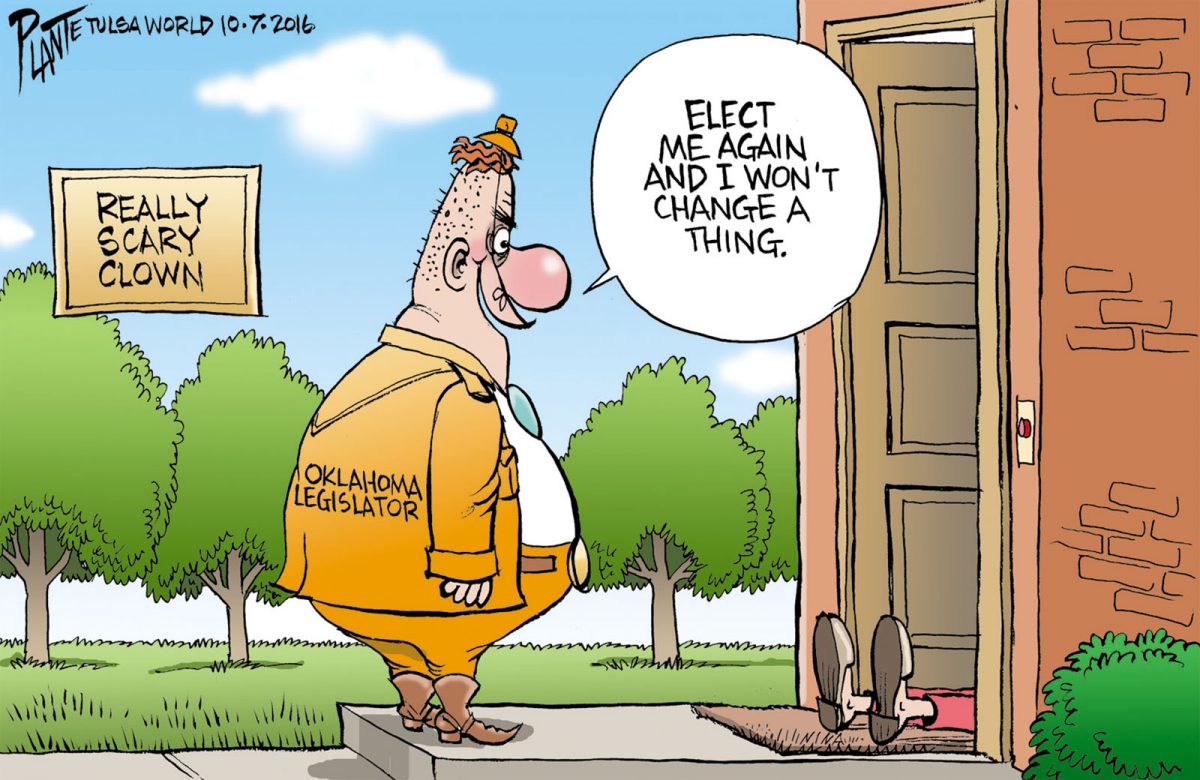 The Really Scary Clown,The Really Scary Clown, Creepy clown, Oklahoma Legislator, OK, status quo, election 2016, Plante 20161009